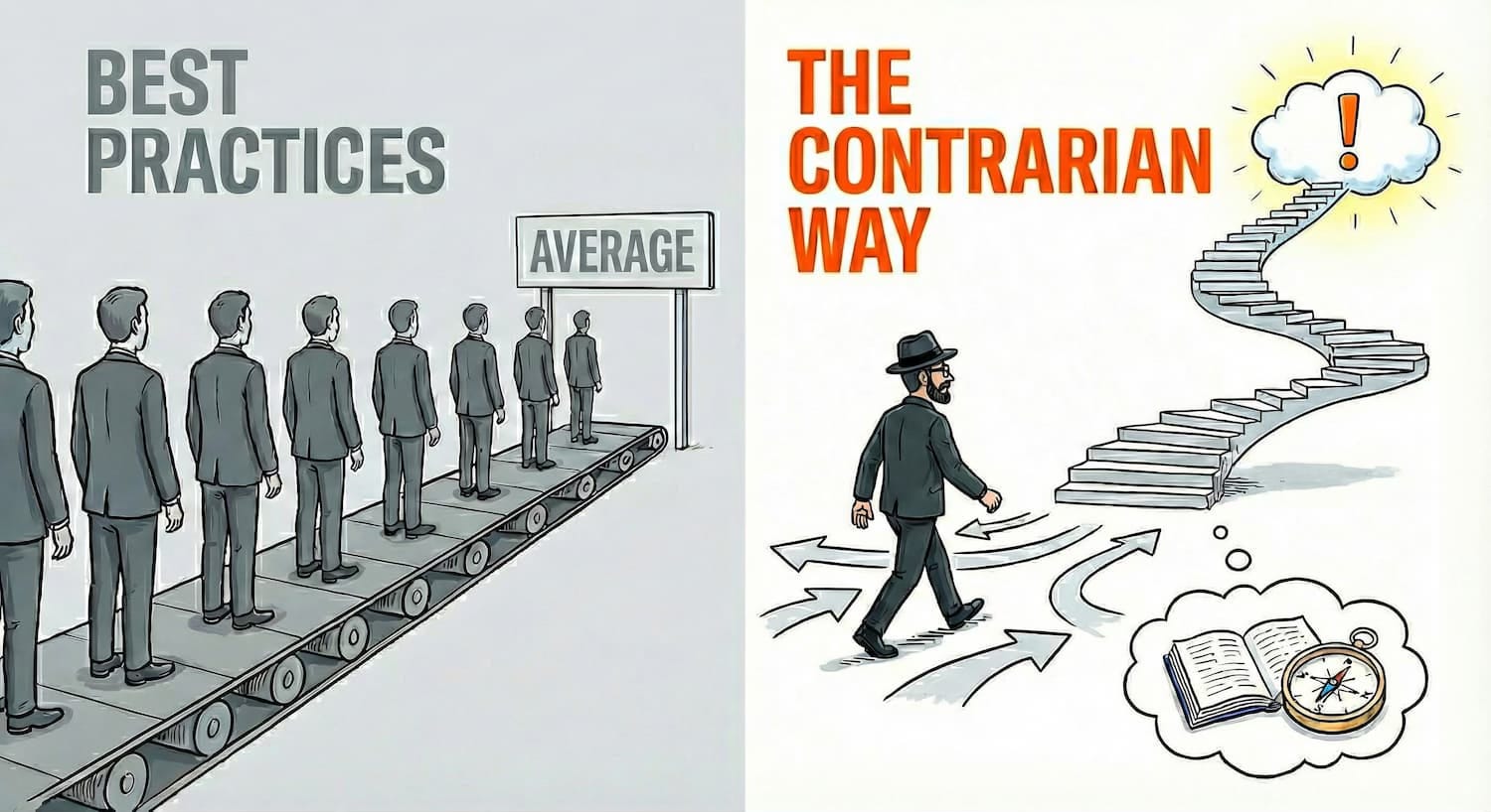 What are you doing (in marketing or elsewhere) that is a best practice? And is it really helping you, or just keeping you afloat in a sea of average? It’s time for new thinking. It’s time to be contrarian and pave a path that works for you.
